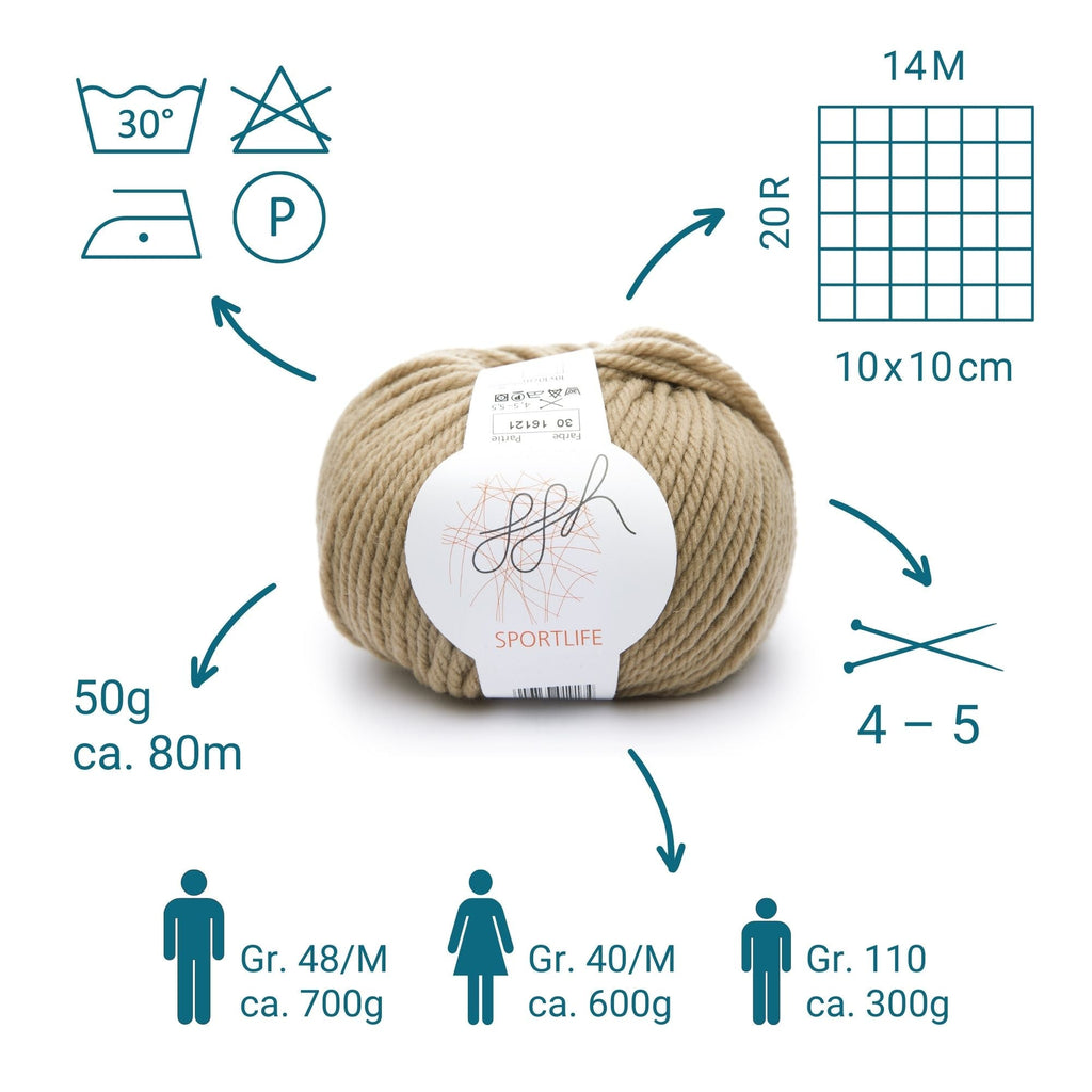 Durch die mittlere Garnstärke eignet sich "ggh Sportlife" besonders gut für Projekte, die sowohl Wärme als auch Strapazierfähigkeit erfordern. Ob für den Wintersport, kühle Abende oder als stylische Accessoires für den Alltag, die Projekte, die Sie mit diesem Garn erstellen, sind sowohl praktisch als auch modisch.